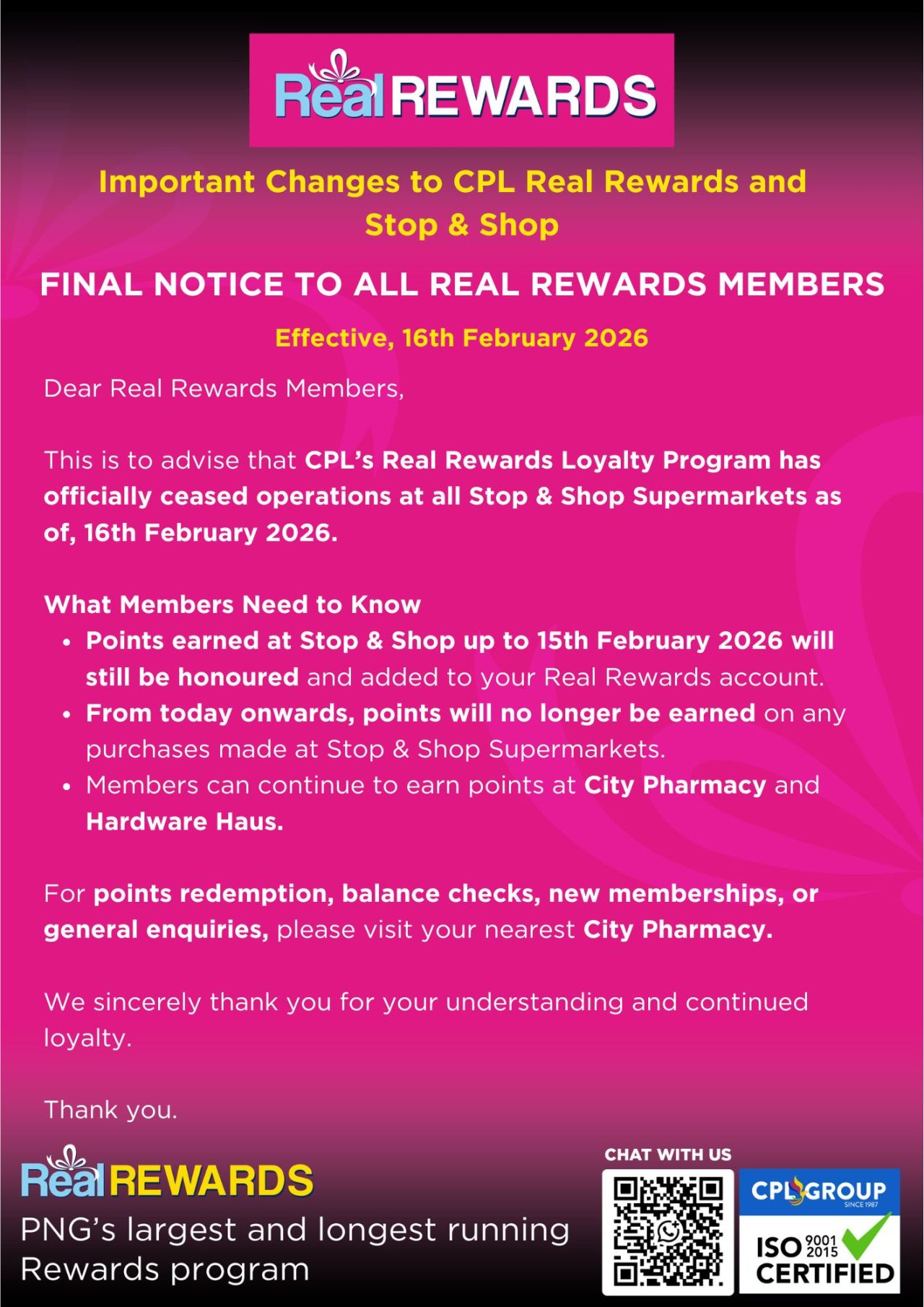 Please note that as of 16th February 2026, CPL Real Rewards no longer operates with Stop & Shop Supermarkets.